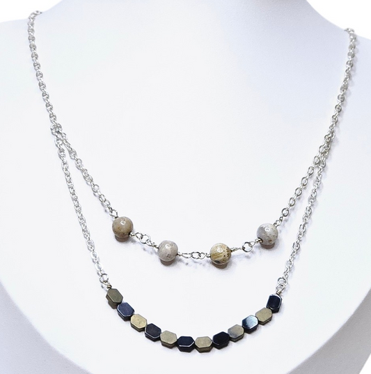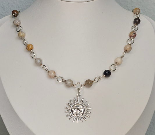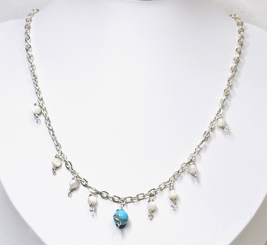 Silver Chain Necklace with White Mother of Pearl & Imperial Jasper Pendant