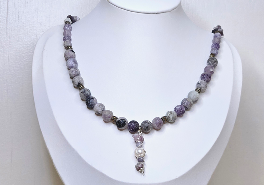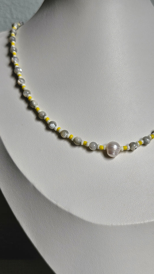 Light Gray Mother of Pearl Round Beads Necklace Real River Pearl Pendant