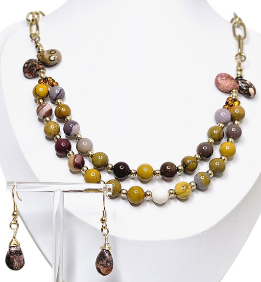 Elegant Wedding Necklace Jasper Beads and Earrings