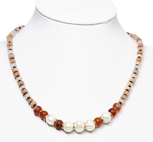 Elegant River Pearl & Aventurine Necklace
