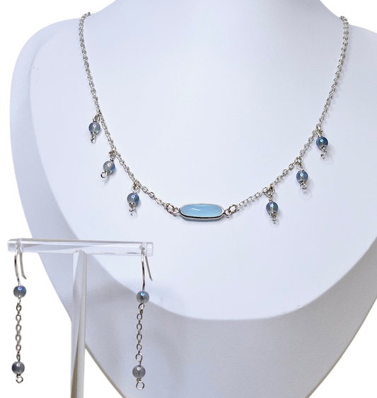 Sapphire Silverite Round Glass Necklace and Earrings