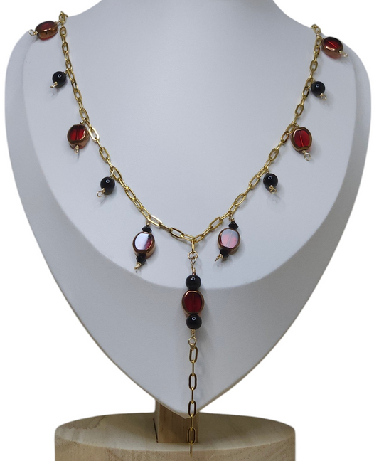 Long Sexy Red and black long necklace with crystals