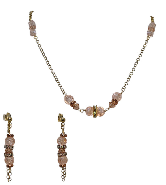Elegant Blush Crystal Bead Jewelry Set – Necklace & Earrings