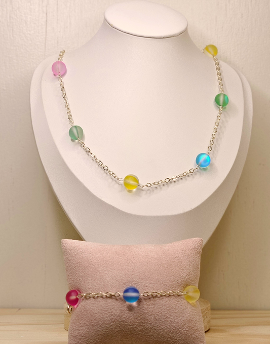 Matte Mermaid Glass Round Beads 3 piece set necklace, bracelet and earrings