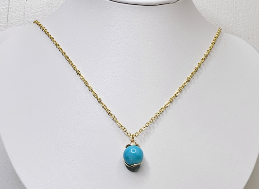Simple Elegant Aesthetic Turquoise Pendant Stainless Steel 18k Gold Plated Chain