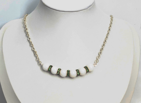 White Bead and Green Crystal Accent Necklace and bracelet
