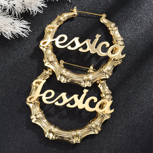 Daily Wear Bamboo Hoop Earrings Custom Name Jewelry Gold Stainless Steel