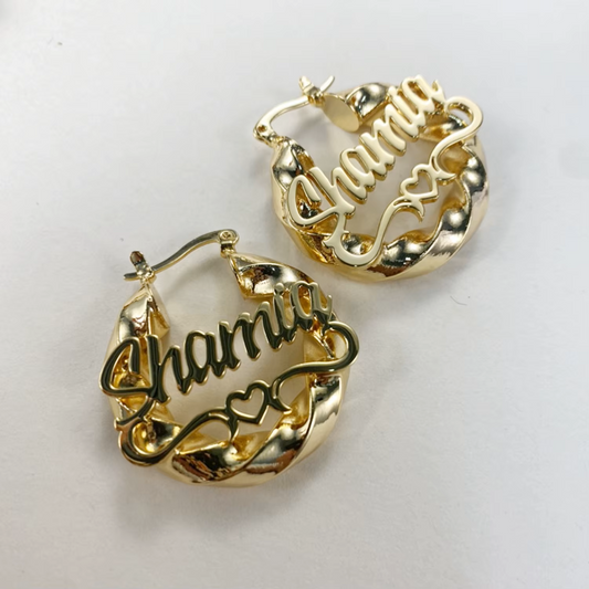 Earrings Custom Name Earrings Custom Hoop Bamboo Style 30mm-100mm Earrings With Heart-shaped