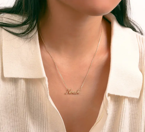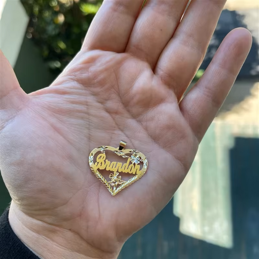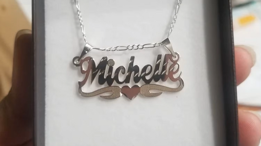 Cursive Nameplate Necklace, Diamond cut Finish, Underlining Middle Heart Name