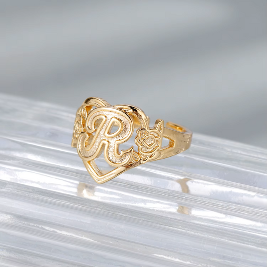 Custom Initials Heart Adjustable Ring For Women Fashion Jewelry