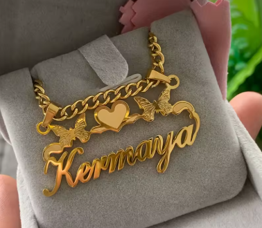 Custom Name Heart Butterfly Stainless Steel Cuban Chain