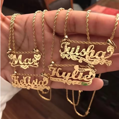 Custom Name Nameplate 18K Gold Pendent Personalized Jewelry Stainless Steel Necklaces For Women/Men,Child 4 styles