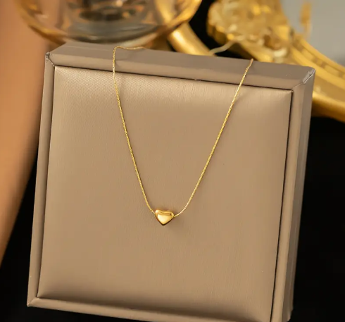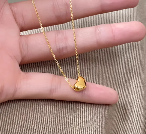 18K Golden Plated Stainless Steel Heart Pendant Necklace for Women