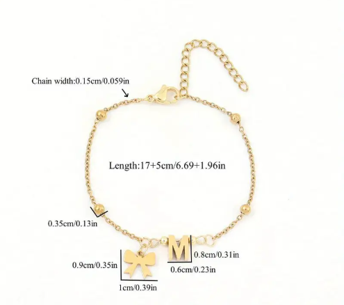 18K Golden Plated Stainless Steel Bow Charm Initial Bracelet