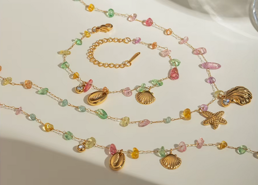 Colored Crushed Stone Shell Starfish Jewelry Set