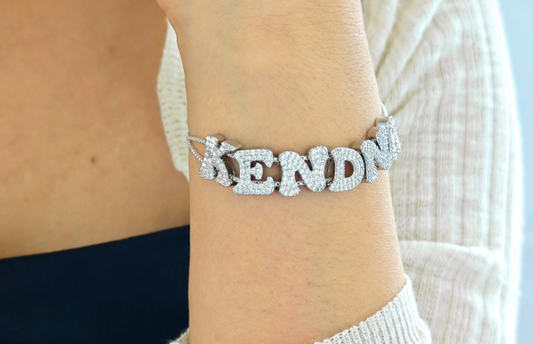 Fat Bubble Slide Initial Letters Bracelet Full Crystal Letters Women Name
