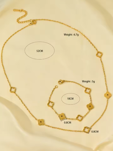 Simple Stainless Steel Four-leaf Clover Plum Blossom Interlocking Pendant Necklace for Daily Wear
