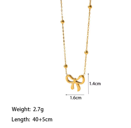 Stainless Steel Delicate Gold Color Bowknot Necklace Bracelet Earrings For Women Bow Tie Charm Unique Design Jewelry Set