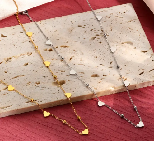18K Golden Plated Stainless Steel Heart Pendant Necklace for Women